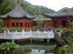 〈冠獄園〉に到着すると、気を取り直してフィールドワークを開始する。〈冠獄園〉は中国風庭園だが、もともとこの近辺は古代山岳仏教の発祥の地なんだそうだ。まず蘇我馬子が熊野社とともに興隆寺を作り、次に阿子丸仙人が天台宗を開いて冠岳頂峯院と称し、その後、真言宗鎮国寺頂峯院となり、現在はその跡地に、今の〈冠獄園〉が建てられたという。中国風の庭園の隣には〈冠岳神社〉があり、その脇に山へと続く道がある。奥の方には洞窟があるらしい。