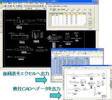 ● 他社CAD(AutoCAD、JWCAD、その他)にも、ボタン1つでデータを渡して表示させることができるので、 現在お使いのCADで編集作業が行え、今まで以上にデータを有効利用することができます。